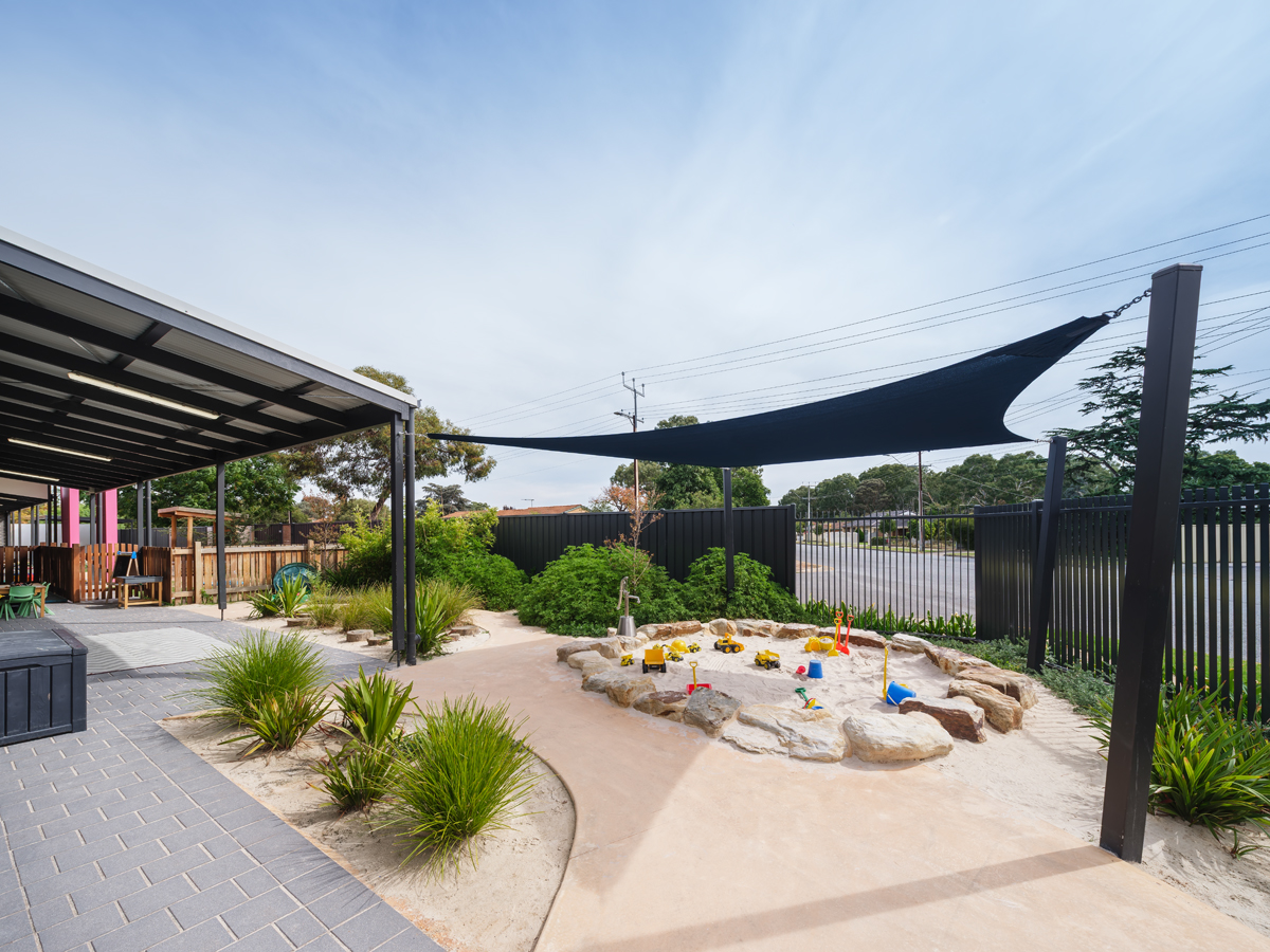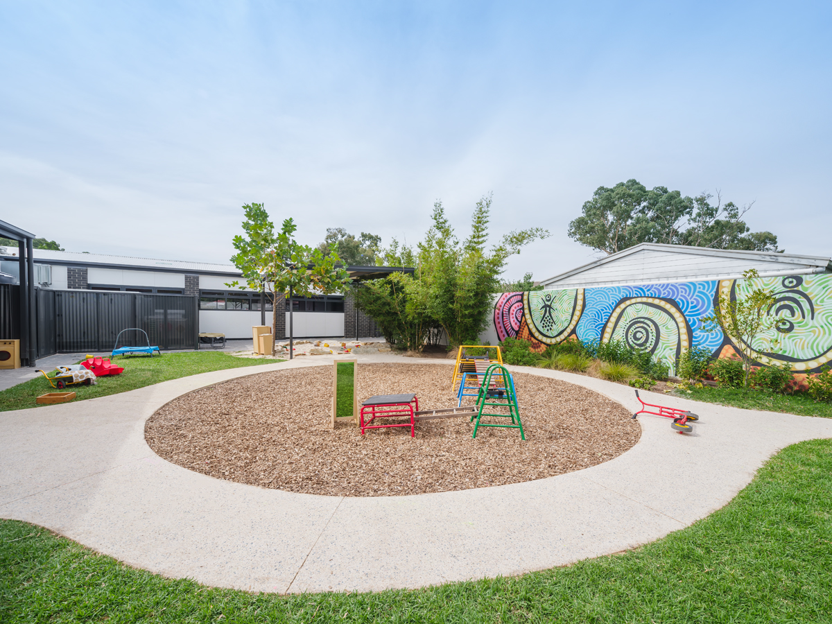The centre incorporates multiple activity rooms, a commercial kitchen, wet areas, preparation rooms, reception and breakout spaces, with internal highlights such as bespoke wall murals, durable marmoleum flooring and a fully equipped commercial kitchen. Externally, the building showcases canopies and feature entry fins, face brickwork, lightweight cladding, and commercial-grade windows and doors. Surrounding works included the design and construction of three custom nature play spaces, feature fencing, shade structures and a new carpark.