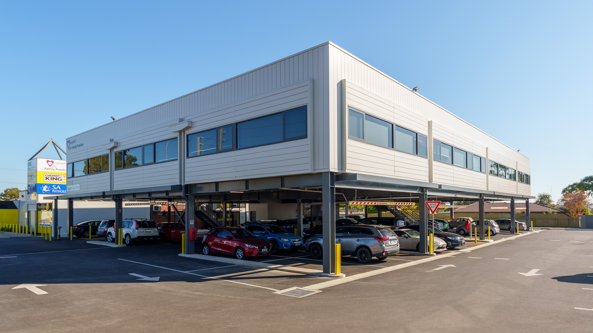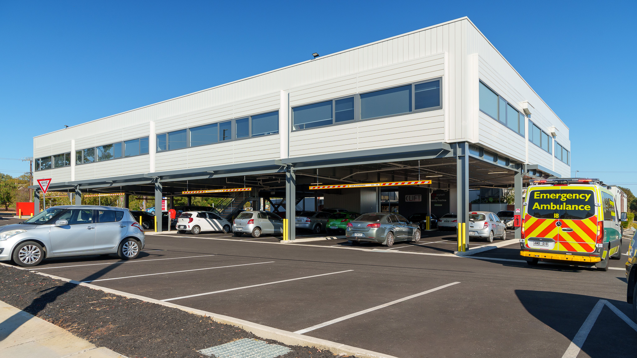 The two-storey development features a ground-floor car park with access to the new upper-level medical centre via a steel stair and passenger lift. The building’s design incorporates a composite framed structure with a suspended slab over structural steel, complemented by a glazed and lightweight envelope. Delivered under a managing contractor arrangement, Centina worked alongside the design team to finalise documentation from 70% design through to IFC, ensuring the client’s vision was realised in a smarter, more cost-effective way.