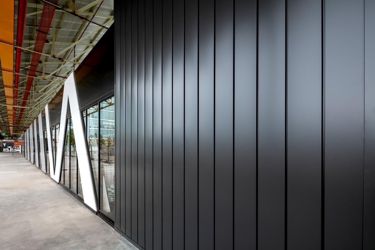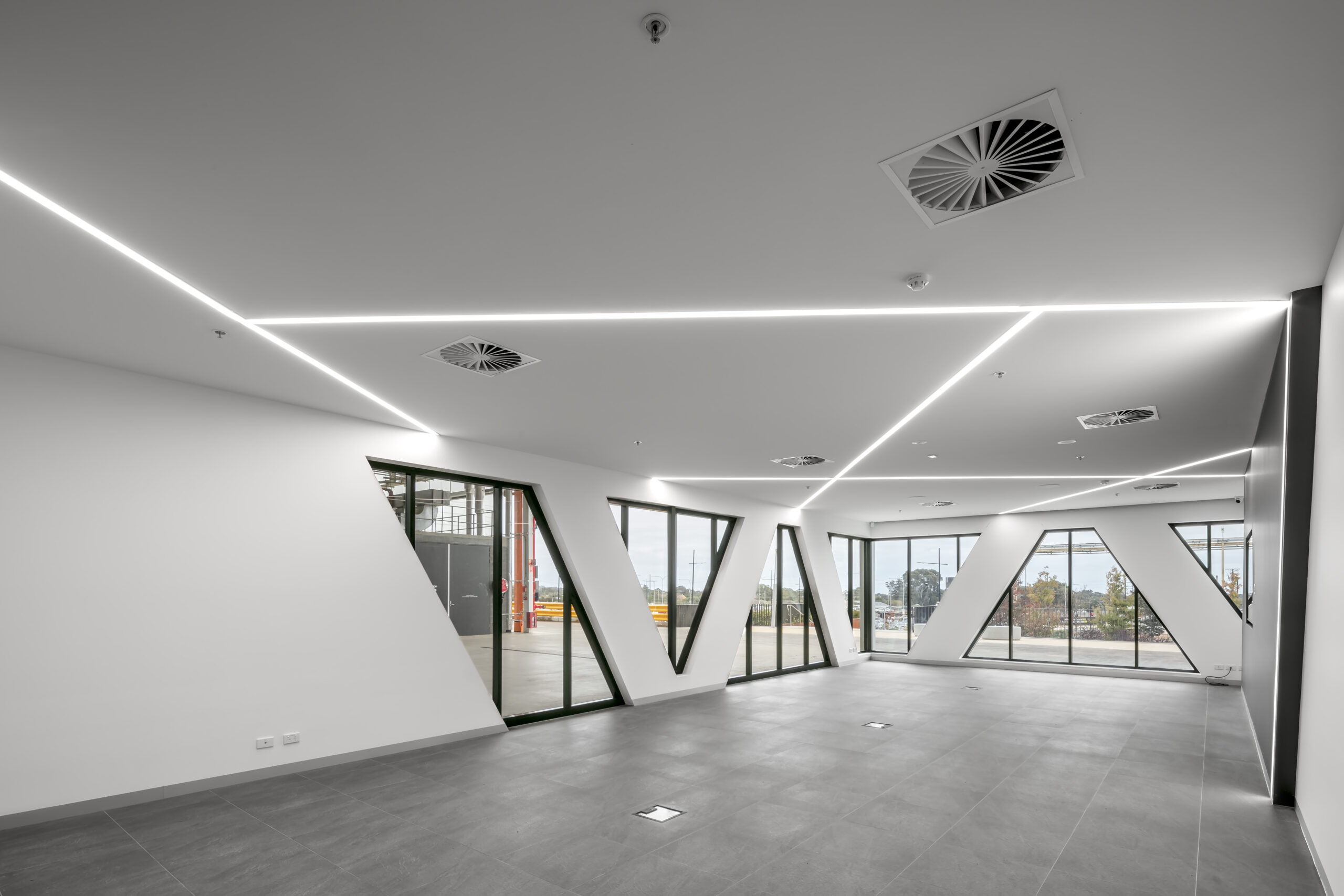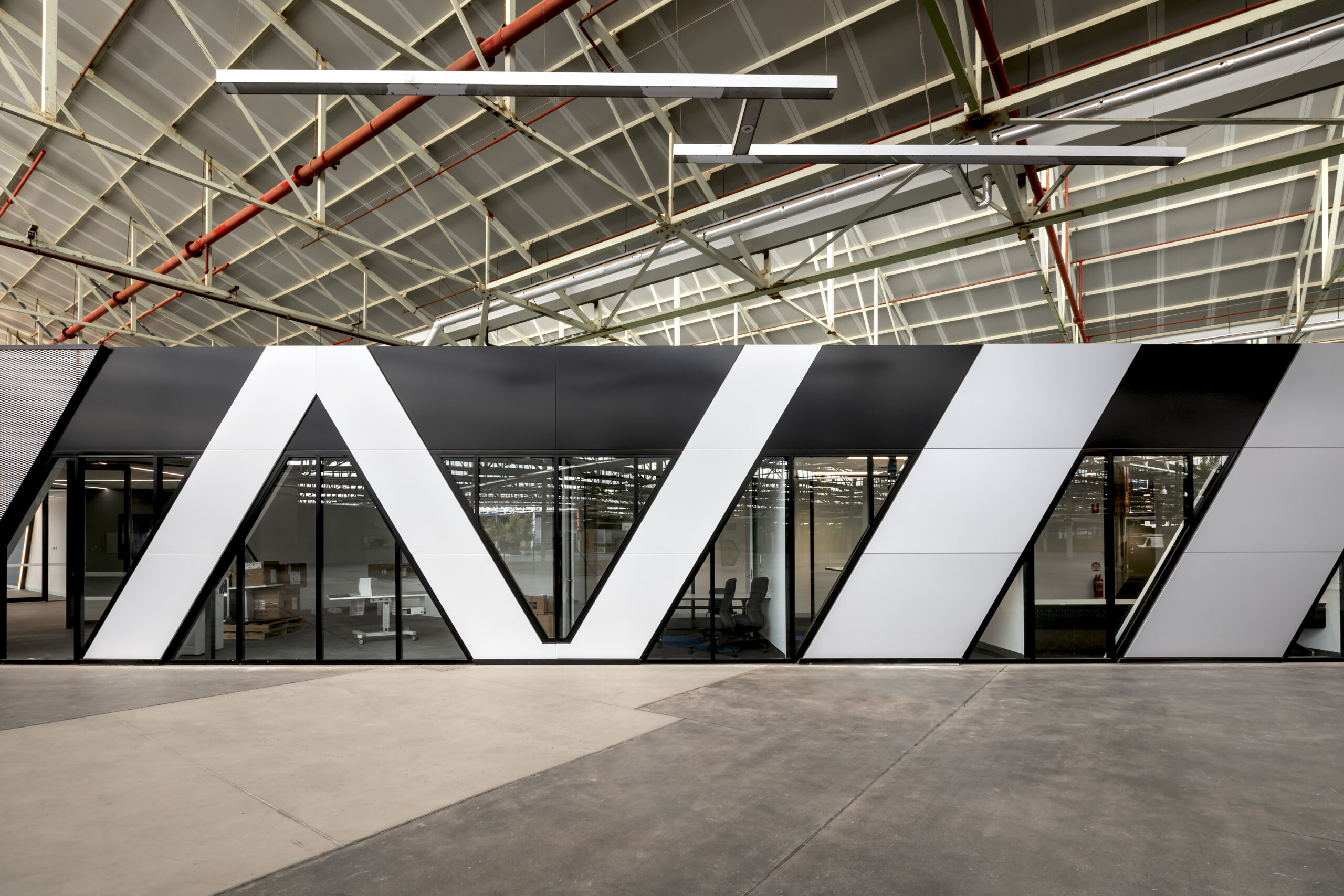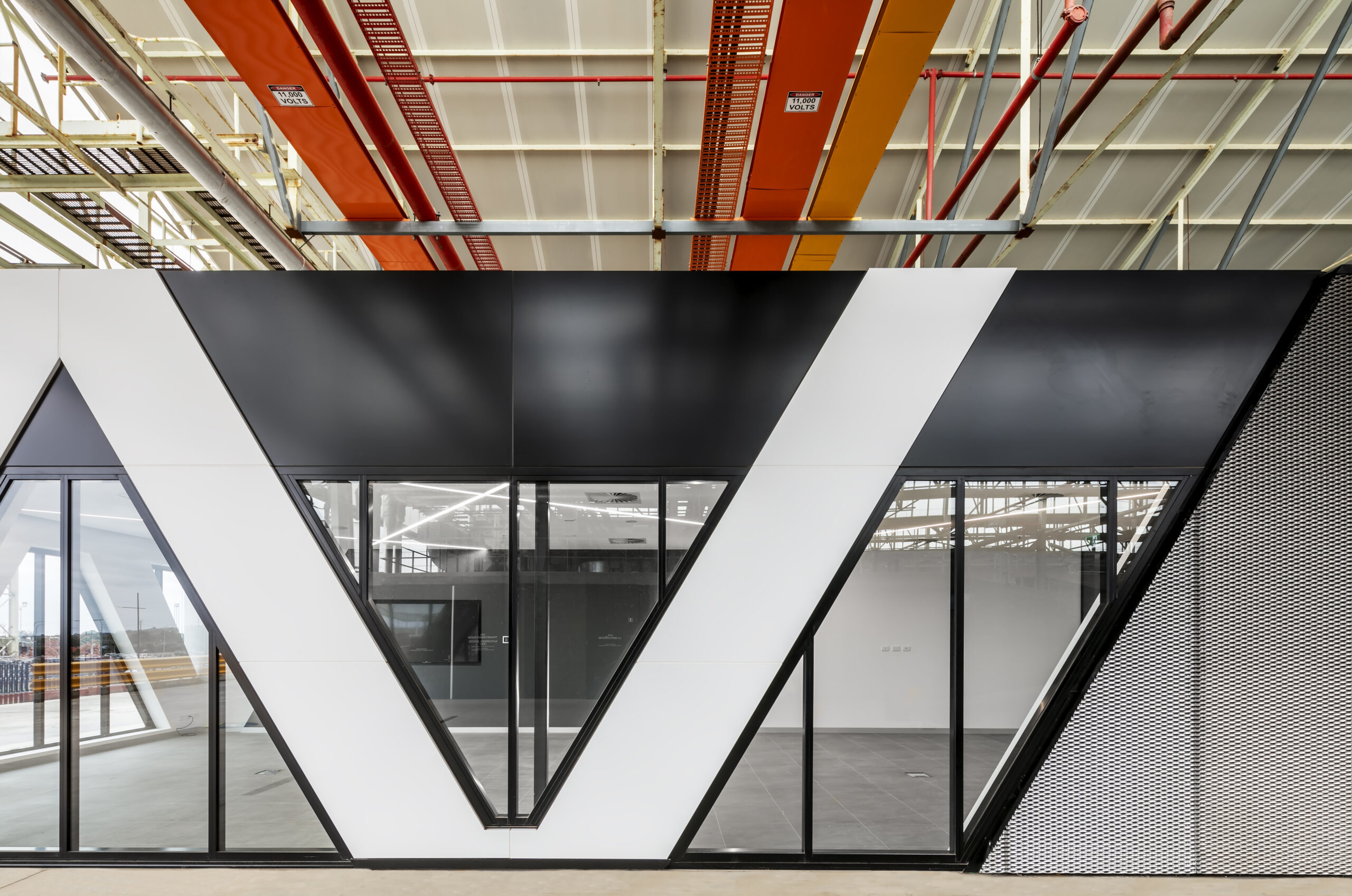 Architecturally, the design pays homage to the sites former use, with an industrial aesthetic, fused with a sharp modern feel. Key elements include web forge cladding, raked aluminium panels, interlocking panels, cantered glazing, and a mezzanine breakout space.